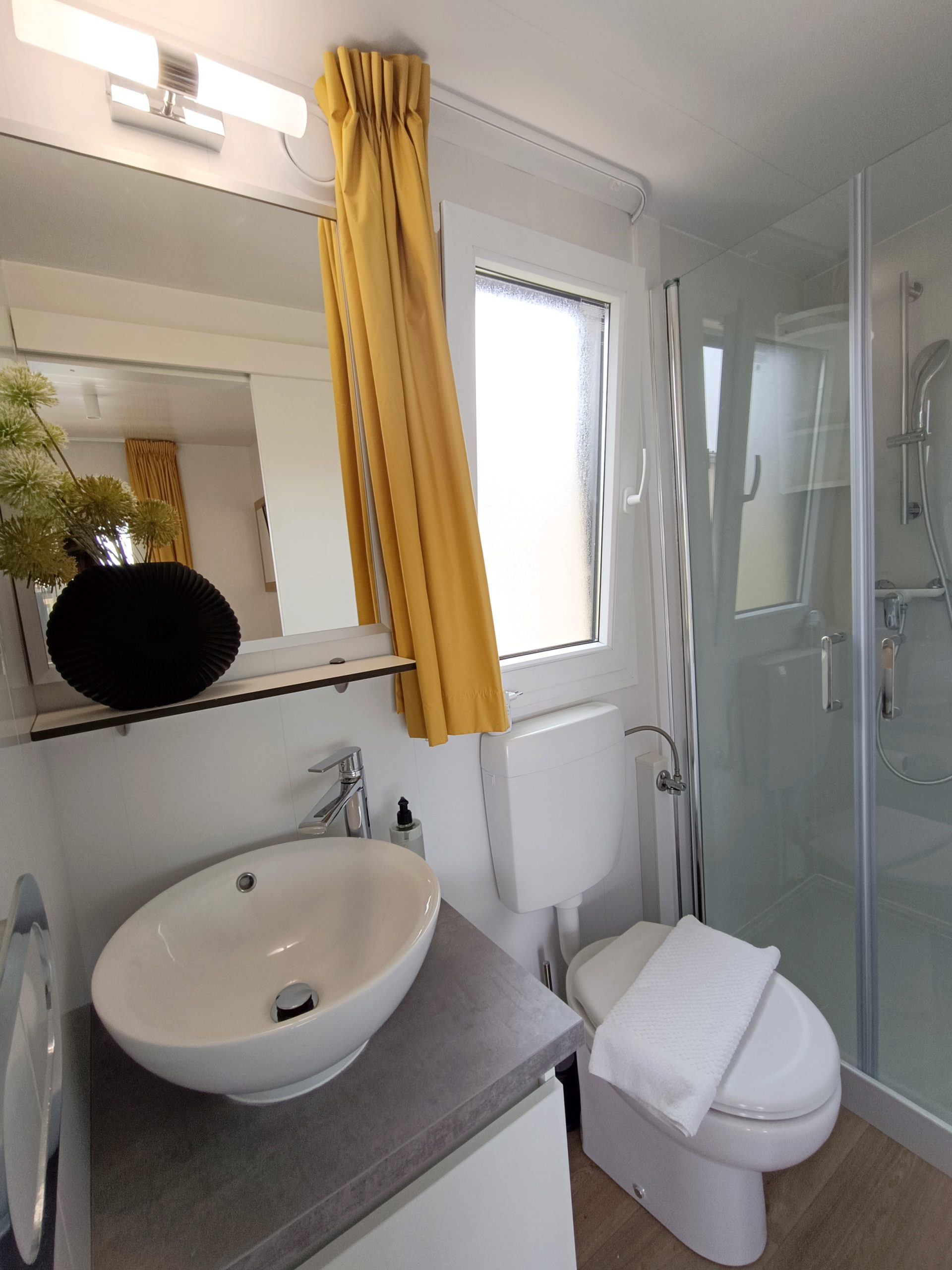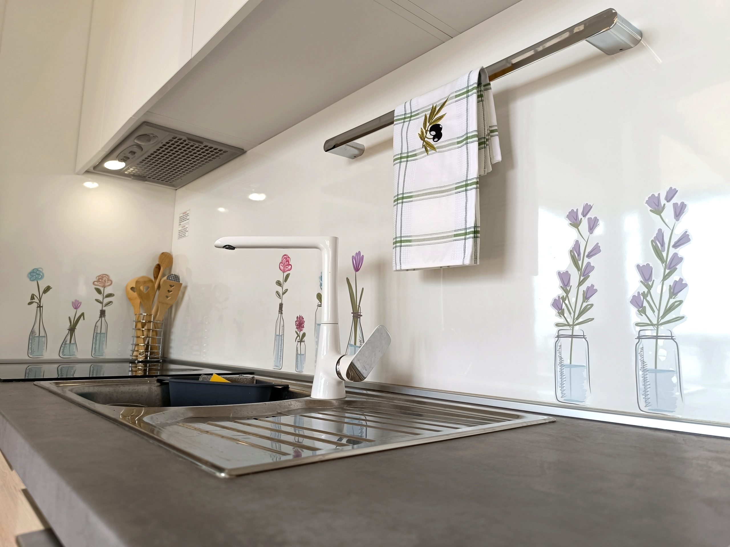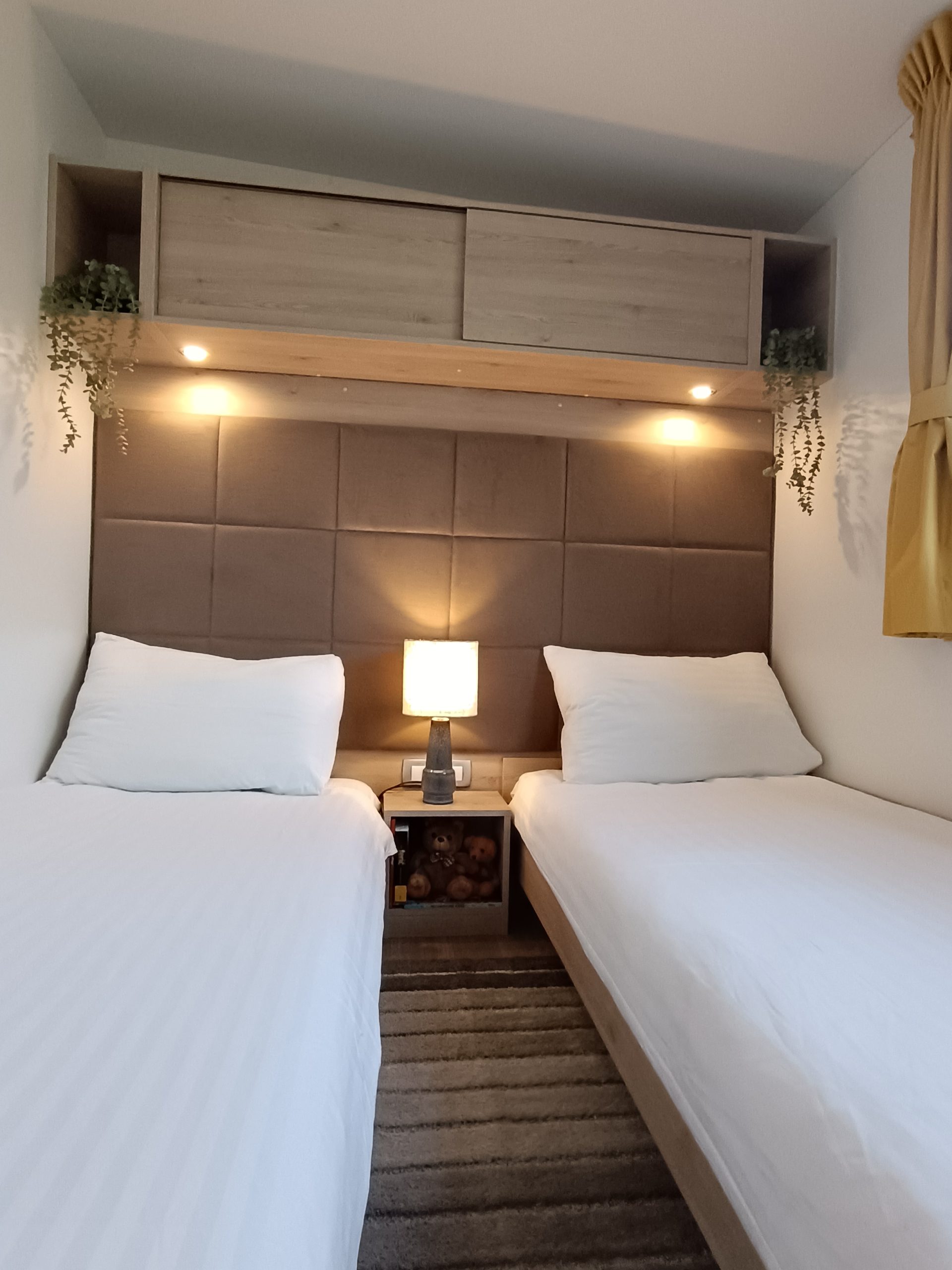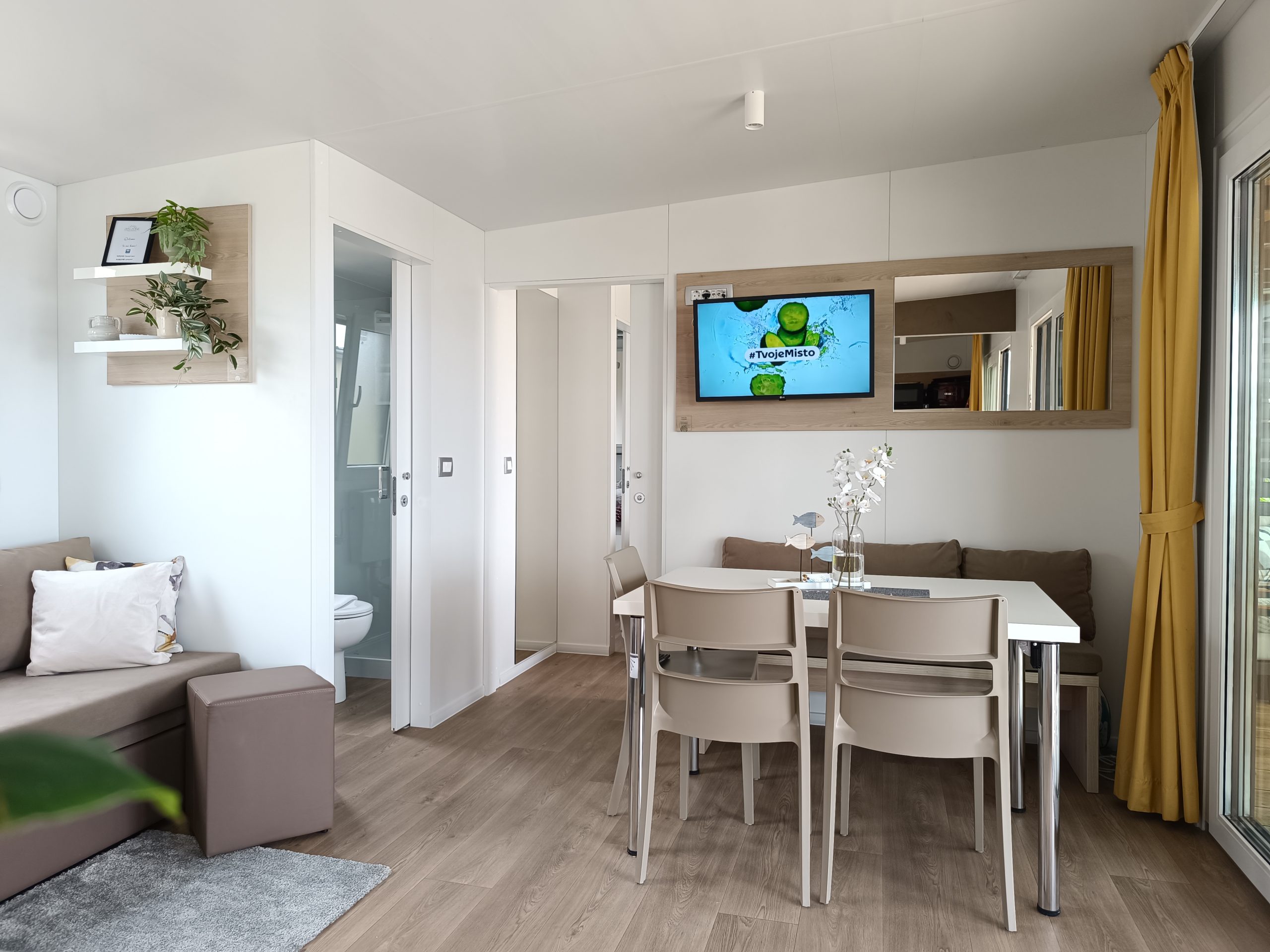 Evening view of a stylishly lit terrace with curtains and tropical plants at Zen Zone holiday home in Croatia